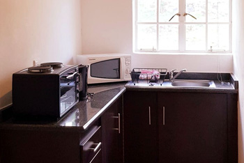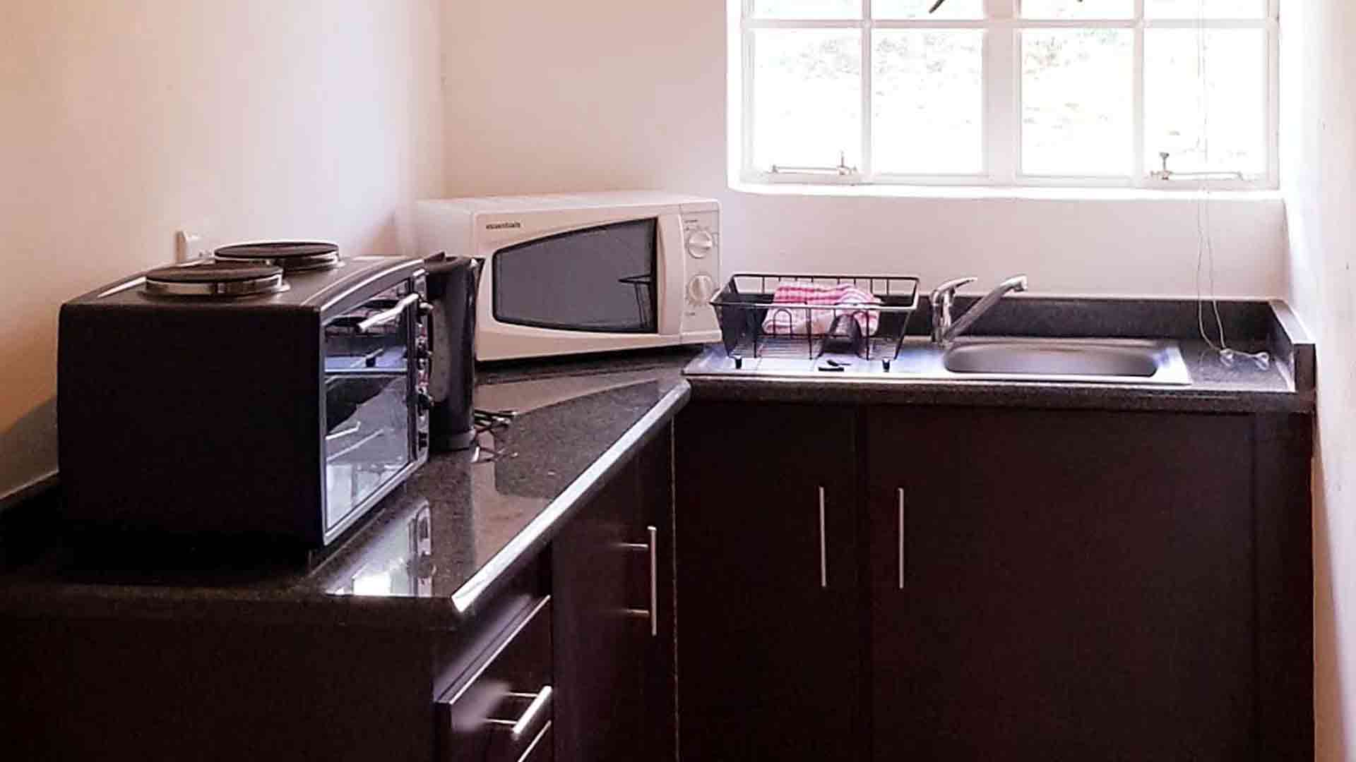 Self-catering room with ensuite bathroom with shower. Kitchenette with communal braai facilities.
